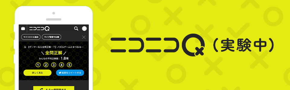 ニコニコにある様々な動画や生放送をお題に、みんなでクイズやアンケートを出して遊ぶことでより動画や生放送を楽しめるようになることを目指し、サービスや機能の実験を続けています。